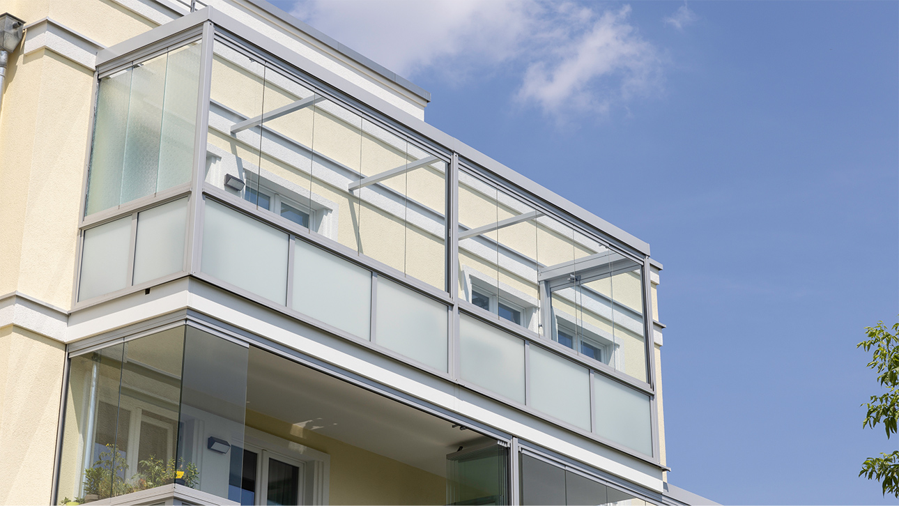 Mit Schiebe-Dreh- oder Schiebesystemen aus Glas bieten Sie Ihrem Balkon nicht nur Schutz vor widrigen Witterungsverhältnissen wie Wind, Regen und Kälte, sondern auch vor Lärm. Je nach Bedarf sind vollständig transparente oder gerahmte Systeme verfügbar. Diese flexiblen, ungedämmten Verglasungen ermöglichen es Ihnen, Ihren Balkon entweder als luftigen Freisitz oder als wettergeschützten Raum zu nutzen, der das ganze Jahr über zur Verfügung steht. Die verschiedenen Systemlösungen können auch nachträglich auf bestehenden Brüstungen installiert werden.