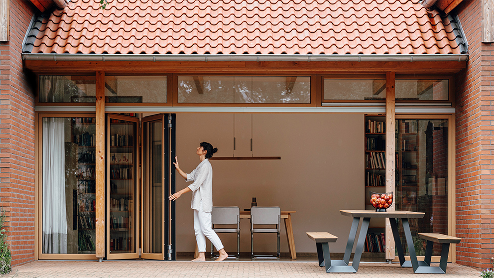 Die Glas-Faltwand von Solarlux erhalten Sie in Aluminium, Holz oder einer Kombination aus Holz/Aluminium. Sie verfügt über perfektionierte, patentierte technische Details wie Laufwagen, die Flügelzentrierung TwinX®, barrierefreie Bodenschienen und Rahmenabdeckungen. Dank einer einheitlichen Konstruktion und durchdachter Beschlagtechnik profitieren alle Systeme der Glas-Faltwand-Familie von einfacher Justierbarkeit und schneller Montage.