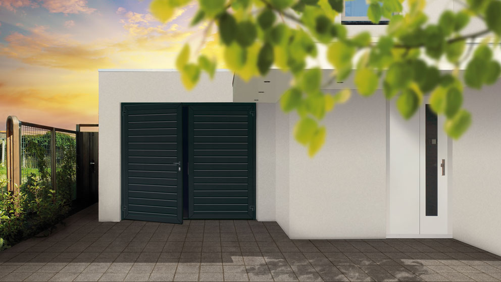 Unsere isolierten DuoPort-Drehtore bieten Ihnen neben einer hohen Wärmedämmung und thermisch getrennten Profilen die Möglichkeit der optimalen Nutzung Ihrer Garage als Lagerraum, für Hobby oder Freizeit. Diese Torlösung lässt sich mit zwei nach außen schwingenden Flügeltüren öffnen und schließen. Wahlweise können beide Flügel oder nur der Gangflügel geöffnet werden – individuell nach Ihrem Bedarf!