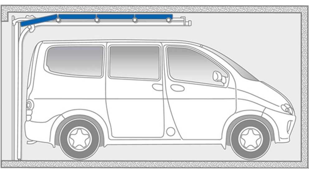 Bei einem Sektionaltor mit elektrischem Antrieb steht Ihnen immer die volle Durchfahrtshöhe zur Verfügung. Beim Austausch eines Schwingtors durch ein Sektionaltor wird die Durchfahrt sogar noch breiter, da das Sektionaltor hinter der Öffnung montiert wird. Da die Sektionen Platz sparend unter die Decke geschoben werden, bleibt auch in der Garage mehr Luft – ideal für hohe Fahrzeuge wie Geländewagen oder Vans.